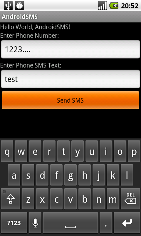 Modify main.xml to have two EditText for user to enter phone number and text.